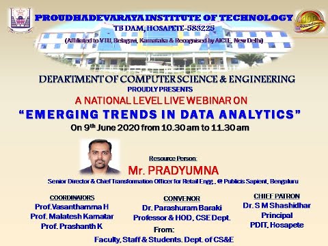 PDIT CSE WEBINAR ON DATA ANALYTICS on June 10, 2020 Get link Facebook X Pinterest Email Other Apps Data Analysis is a process of examining, cleaning, modifying, and displaying data to find valuable data, suggesting results, and encouraging decision-making.